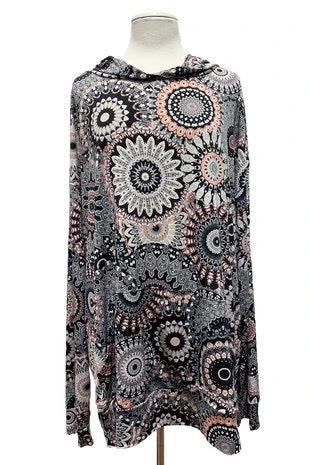 12 HD-B {Play It Smart} Grey Mandala Print Hoodie EXTENDED PLUS SIZE 3X 4X 5X