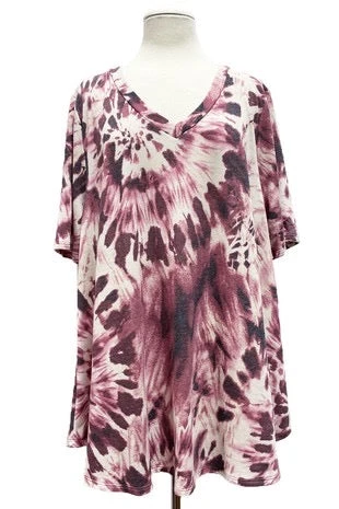 12 PSS-F {Discover A New You} Plum SALE! Tie Dye V-Neck Top EXTENDED PLUS SIZE 1X 2X 3X 4X 5X