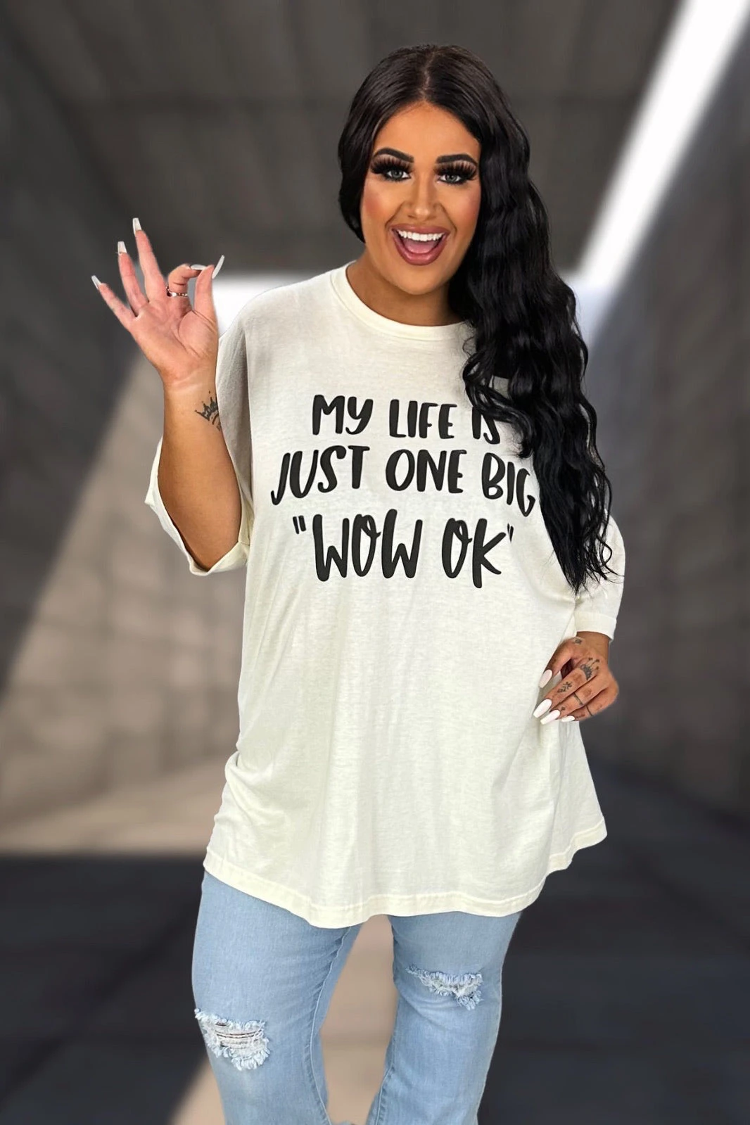 14 GT {My Life Is Just One Big Wow Ok} Cream Graphic Tee PLUS SIZE 3X
