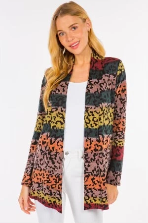 16 OT-A {Spill The Wild} Multi-Color Striped Leopard Cardigan PLUS SIZE 1X 2X 3X