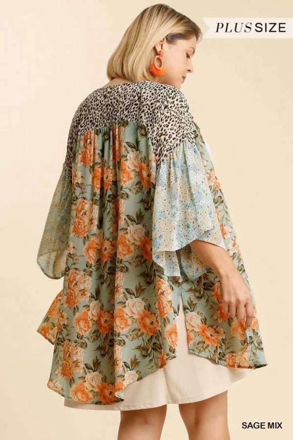16 OT-I {Out Of Line} Umgee ! Sage Multi-Print Kimono PLUS SIZE XL 1X 2X