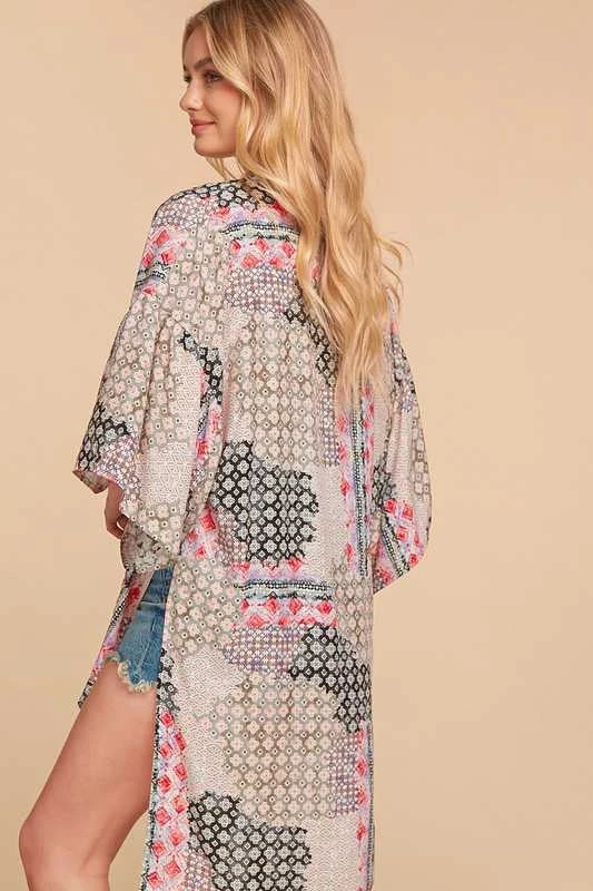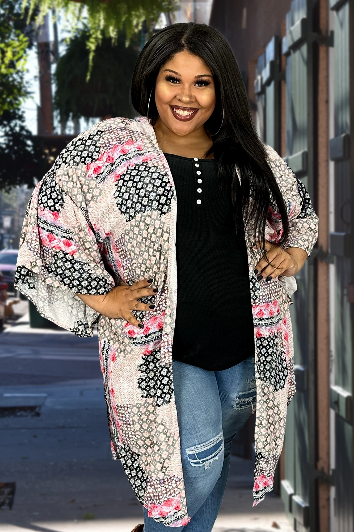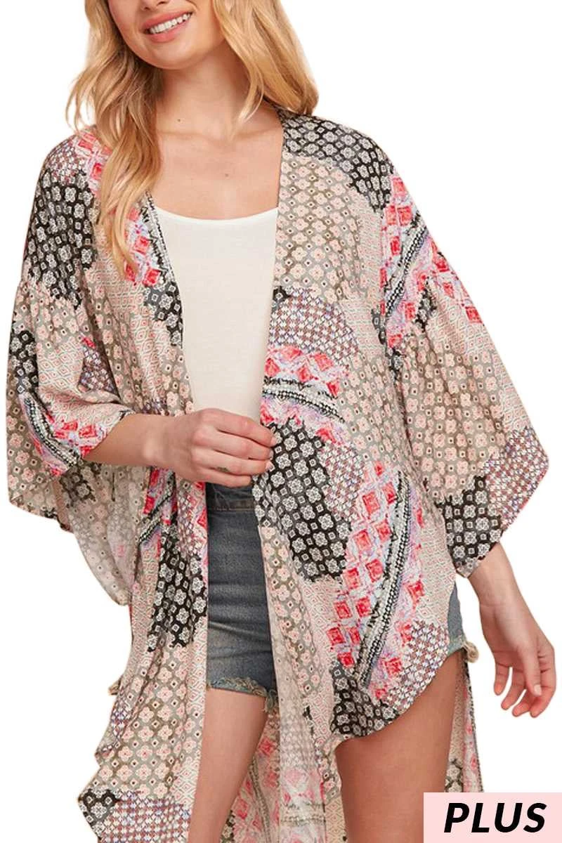 19 OT-R {Delicately Delivered} Charcoal Coral Print Kimono PLUS SIZE XL 2X 3X