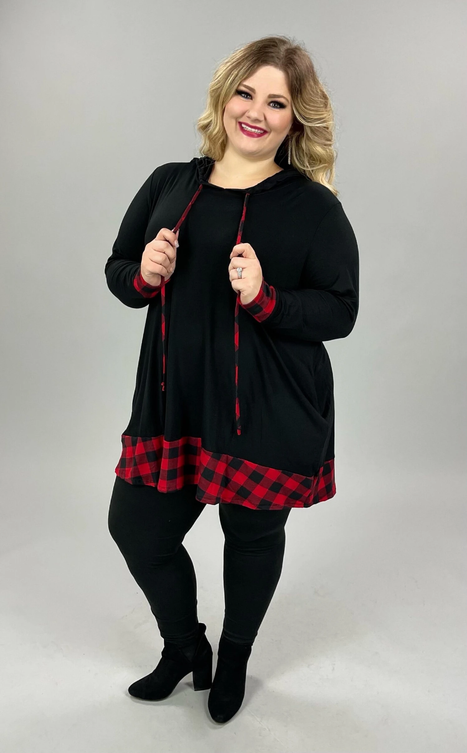 21 HD-E {Perfect Curvy} Black/Red Plaid Contrast Hoodie SALE!!! CURVY BRAND!! EXTENDED PLUS SIZE 3X 4X 5X 6X