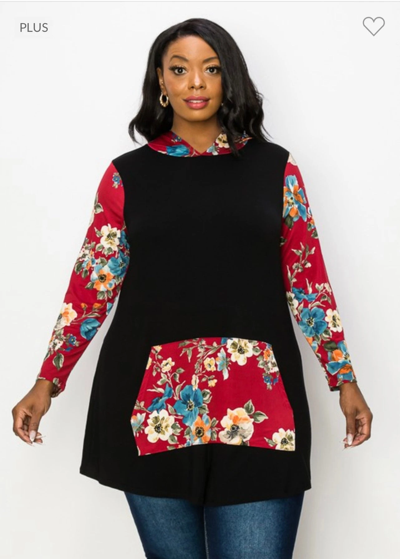 21 HD-Z {Love And Adored} Black/Floral Print Hoodie CURVY BRAND!!! EXTENDED PLUS SIZE 4X 5X 6X