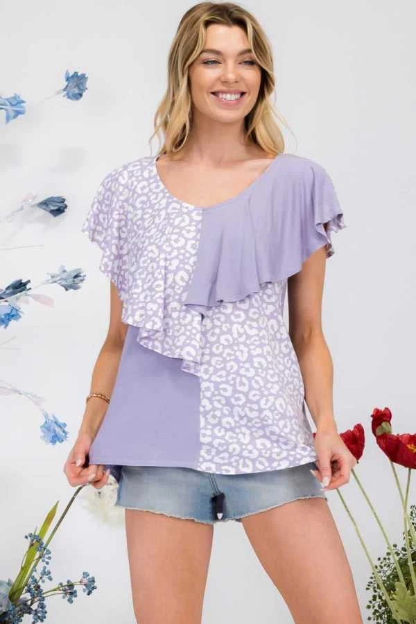 23 CP-B {Good Intentions} SALE!! Lilac Animal Print V-Neck Top PLUS SIZE XL 2X 3X