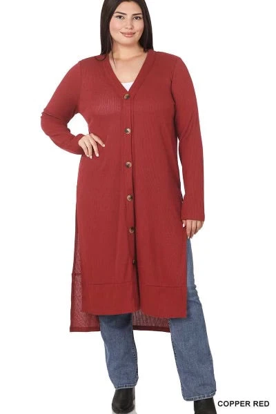 23 OT-M {Close To You} Copper Red Ribbed Button Up Duster SALE!!! PLUS SIZE 1X 2X 3X