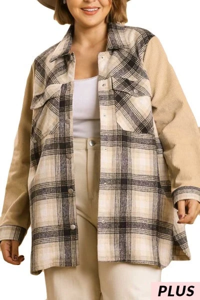 24 OT-B {Class Is In} Umgee Taupe Plaid Shacket SALE!! PLUS SIZE XL 1X 2X