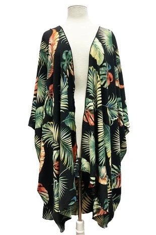 24 OT-C {The Palm Effect} Black Palm Leaf Print Kimono EXTENDED PLUS SIZE 3X 4X 5X