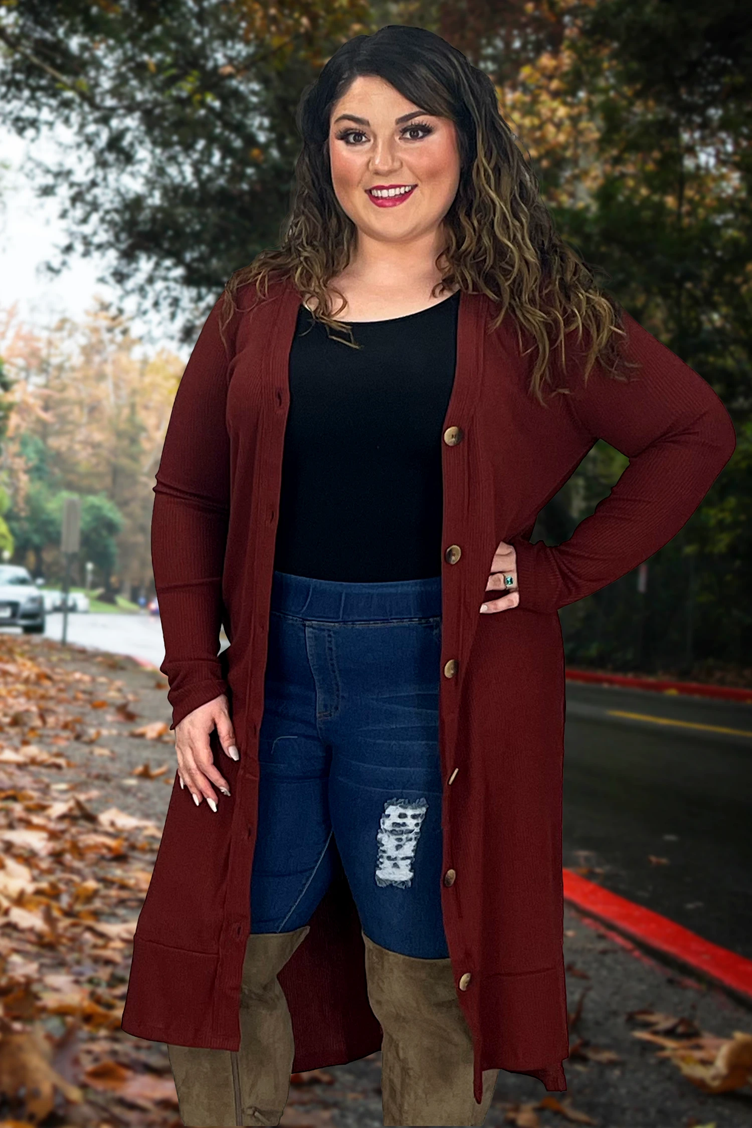 24 OT-P {Close To You} Dk. Rust Ribbed Button Up Duster SALE!! PLUS SIZE 1X 2X 3X