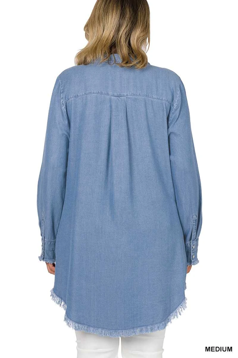 24 SLS {Doing Alright} Medium Denim Chambray Tunic PLUS SIZE 1X 2X 3X
