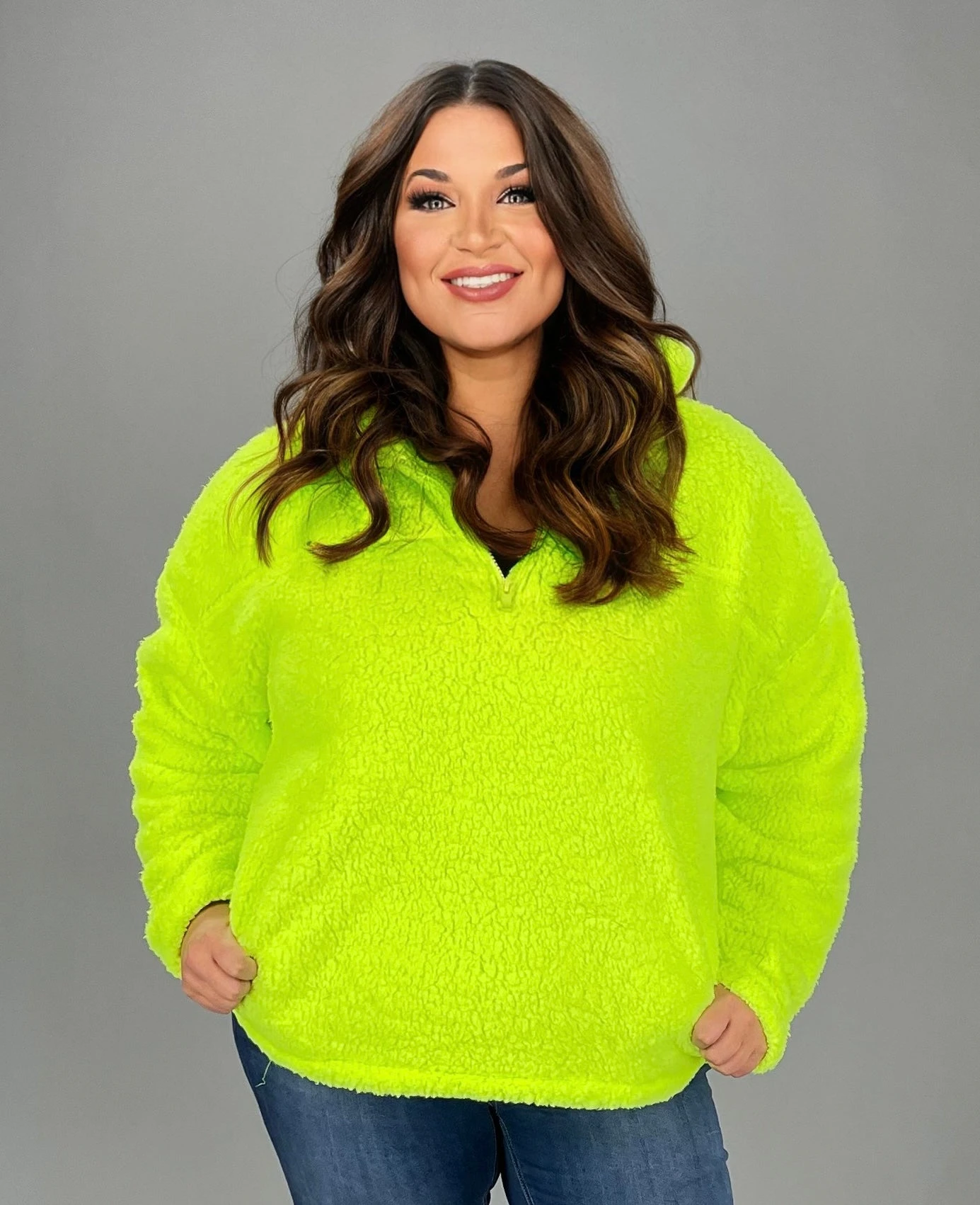 25 OR 31 SLS-A {For The Moment} Neon Lime Fleece Pullover SALE!! PLUS SIZE 1X 2X 3X