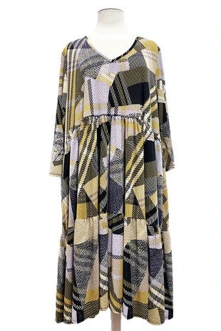 25 PQ {Setting The Record} Tan/Black Geo Print Tiered Dress EXTENDED PLUS SIZE 3X 4X 5X