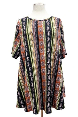 25 PSS {Sending My Love} Black/Brown Striped Paisley Top EXTENDED PLUS SIZE 4X 5X 6X