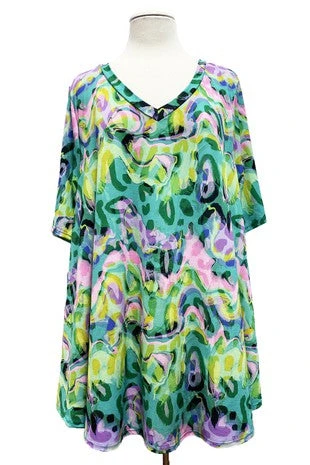 25 PSS {Whirlwind Romance} Green Lavender Print Top EXTENDED PLUS SIZE 4X 5X 6X
