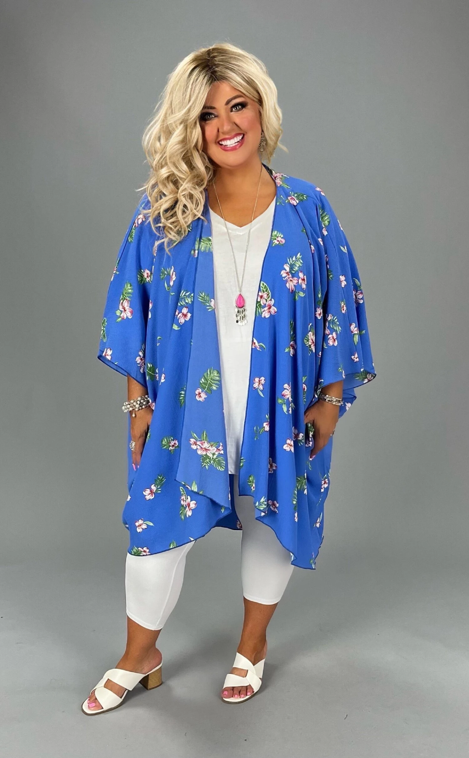 26 OT {Time To Bloom} Blue Floral Kimono EXTENDED PLUS SIZE 3X 4X 5X