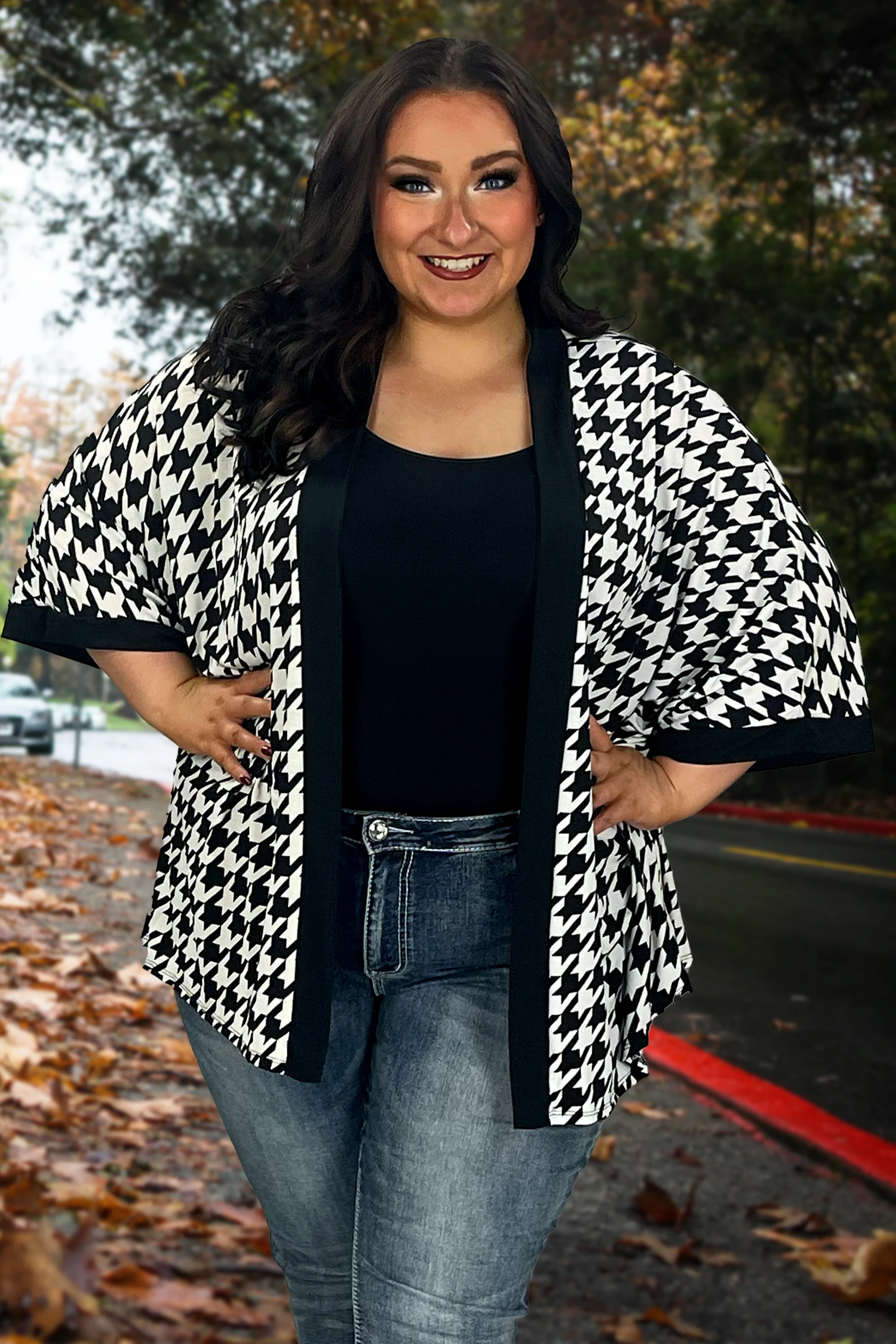 26 OT-U {In The Works} Black Houndstooth Kimono PLUS SIZE XL 2X 3X