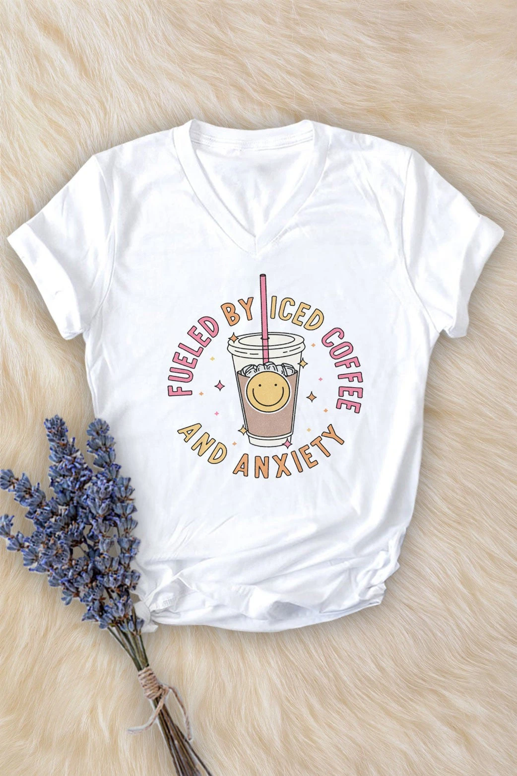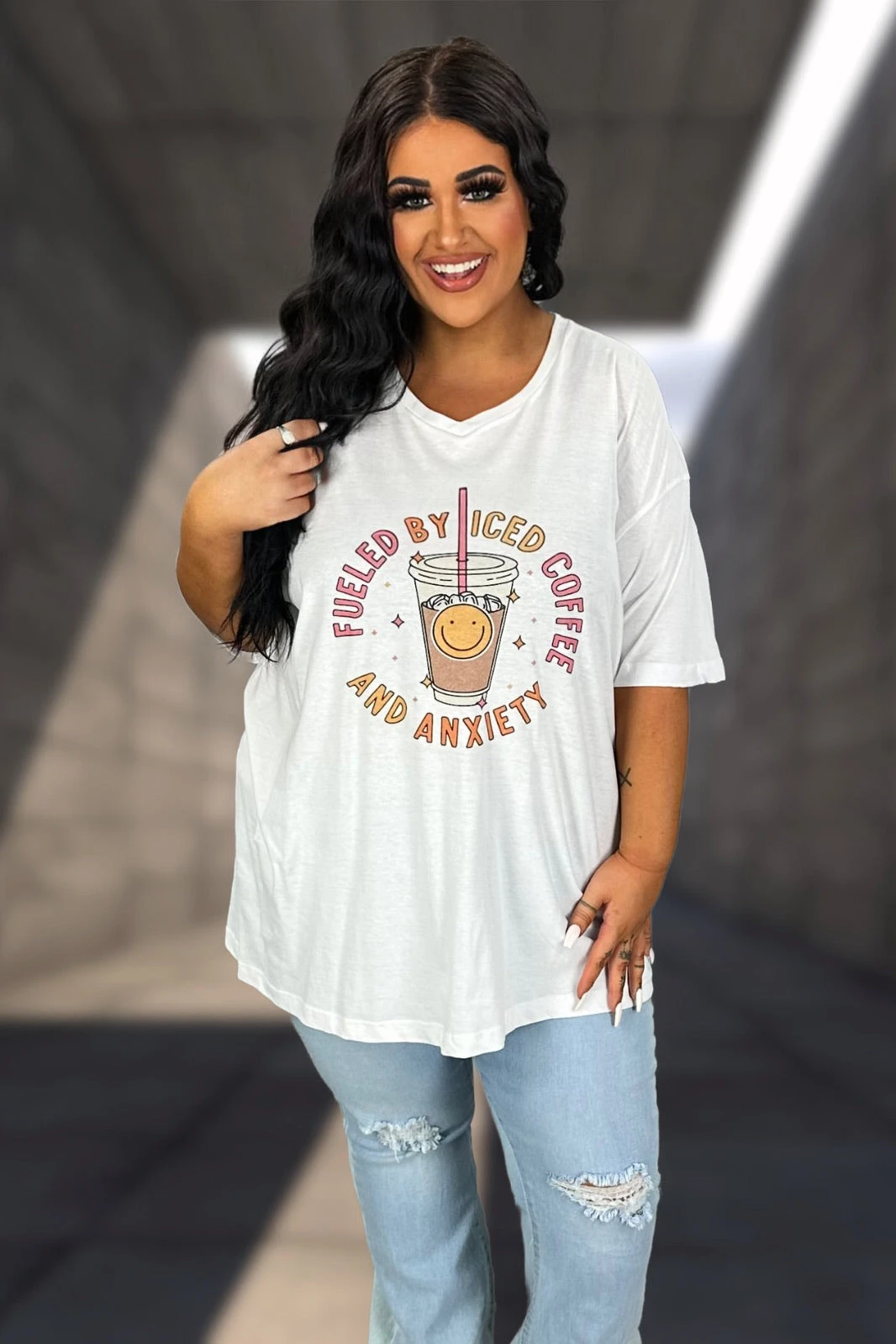 28 GT {Iced Coffee And Anxiety} Ivory V-Neck Graphic Tee PLUS SIZE XL 2X