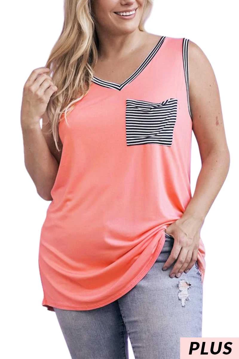 28 SV-D {Positive Feelings} Coral SALE!! Stripe Print Top PLUS SIZE XL 2X 3X