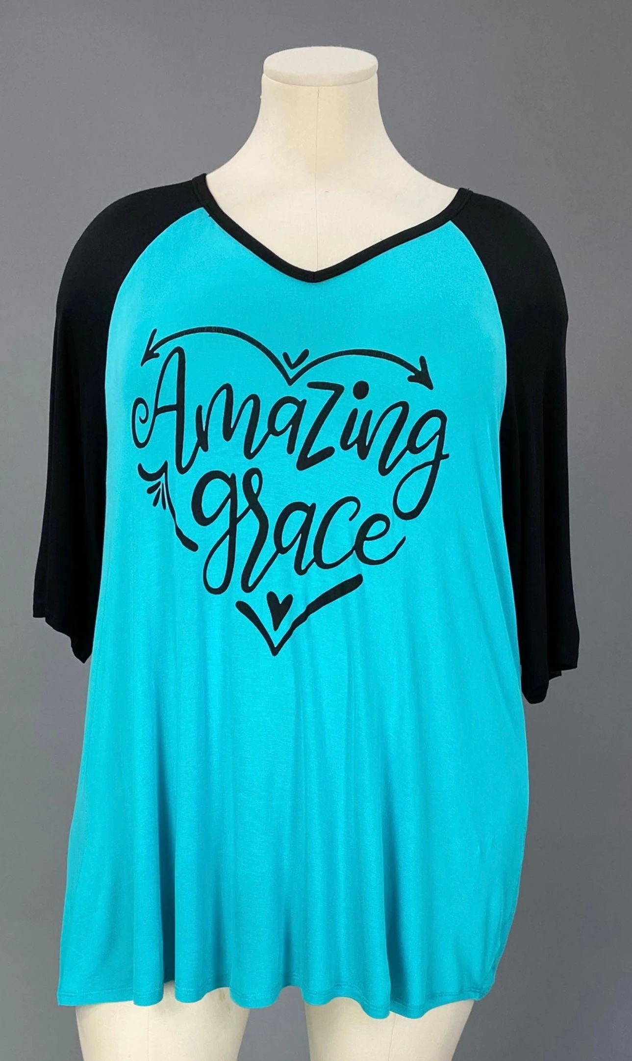 29 GT {Amazing Grace} Turquoise/Black Graphic Tee CURVY BRAND!!! EXTENDED PLUS SIZE XL 2X 3X 4X 5X 6X
