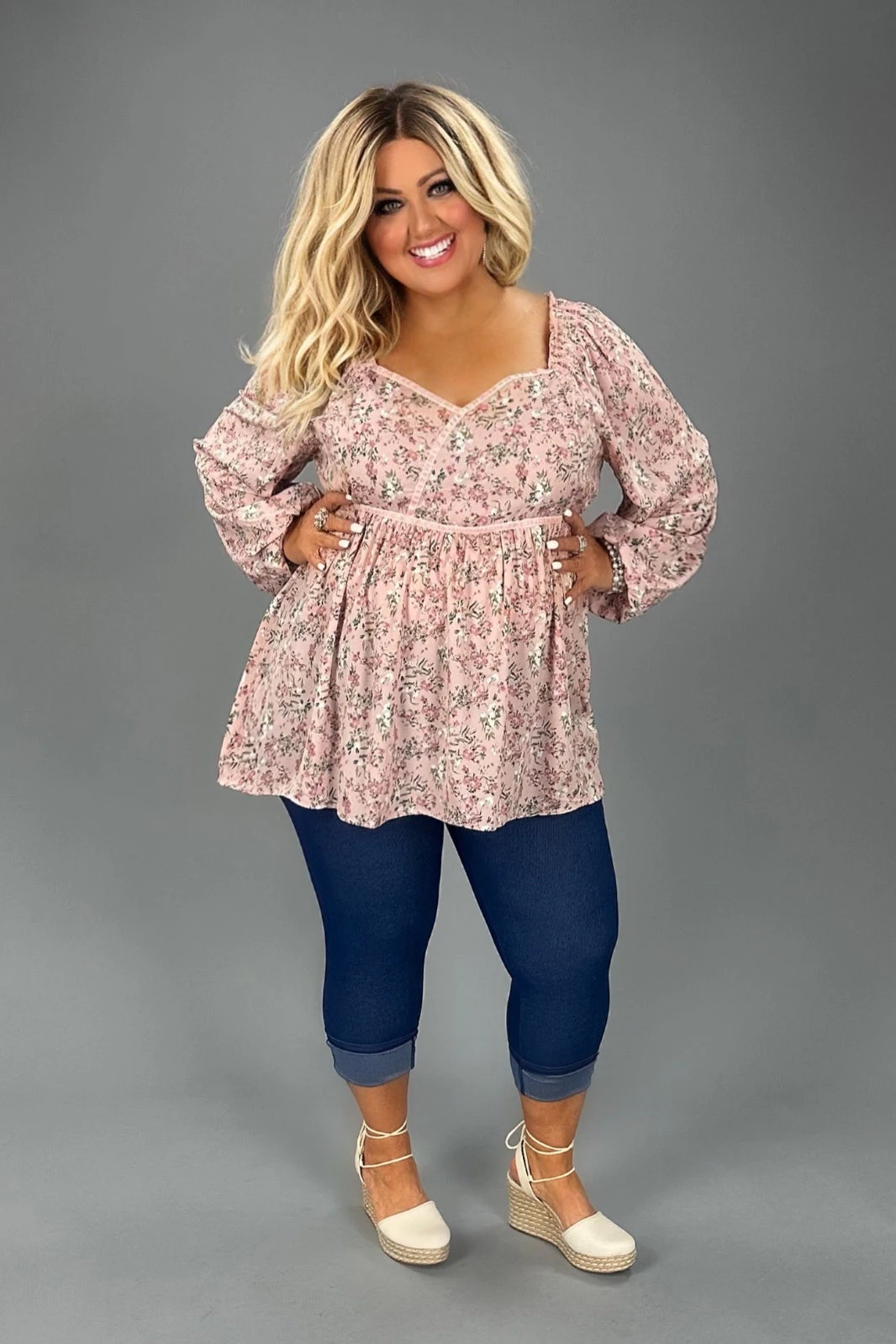 29 PLS-H {Be Exclusive} Umgee SALE! Blush Floral Babydoll Top PLUS SIZE XL 1X 2X