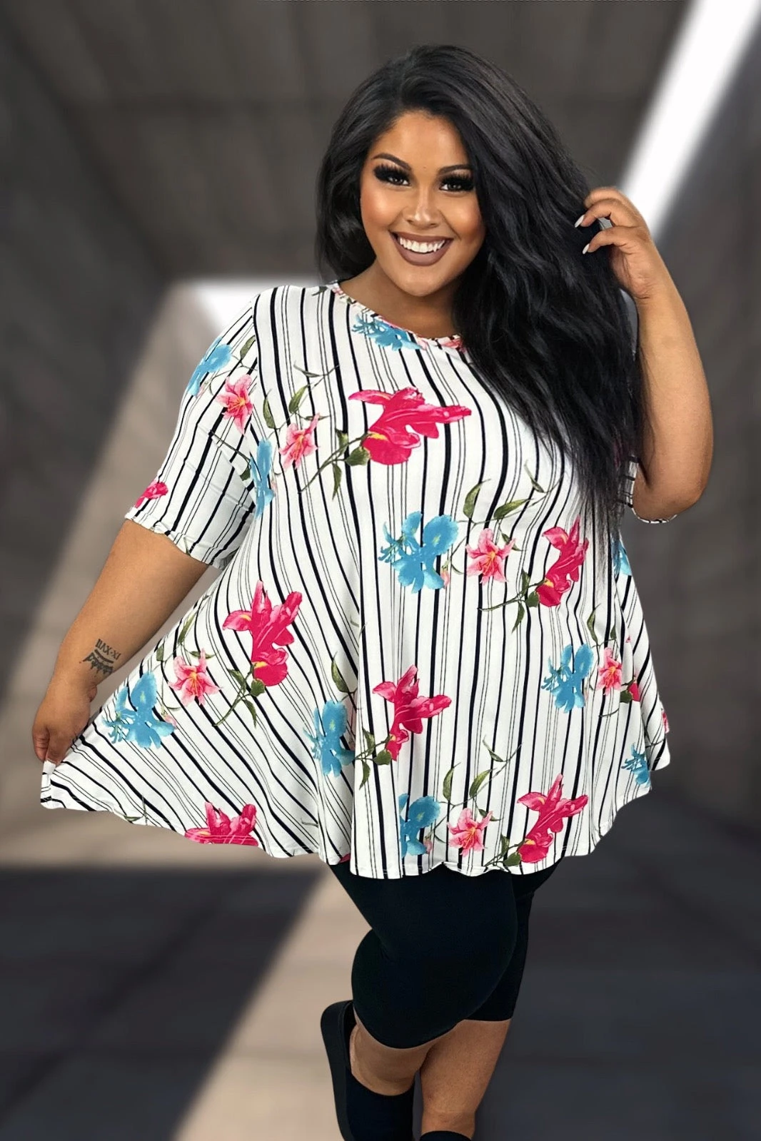29 PSS {Iris On The Line} SALE! Ivory/Black Stripe Floral Print Top EXTENDED PLUS SIZE 4X 5X 6X