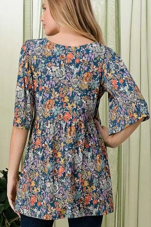 29 PSS-R {Success Suits You} Teal Floral Babydoll Top PLUS SIZE 1X 2X 3X