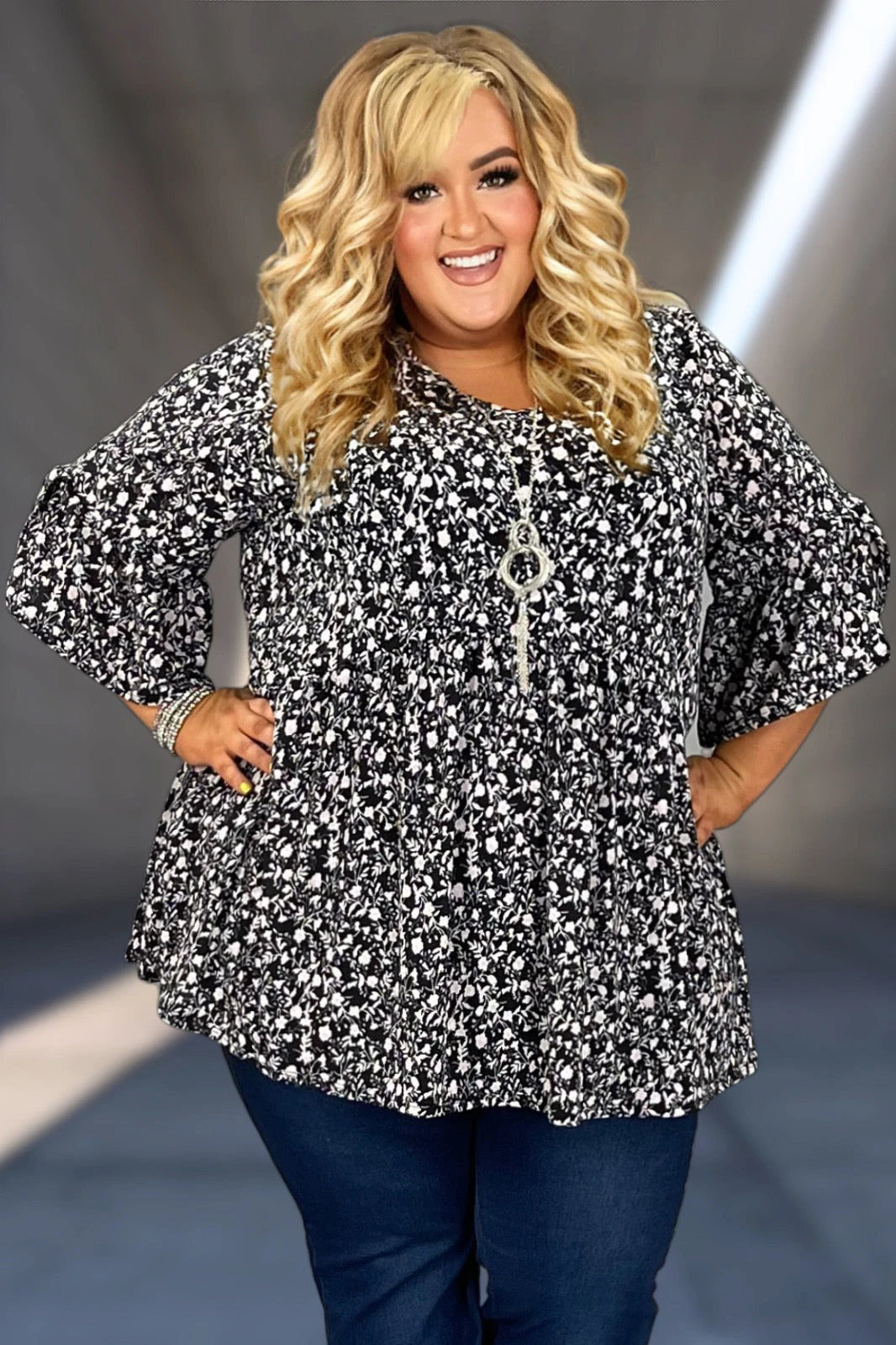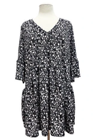 31 PSS-N {New Kind Of Spirit} Black Floral V-Neck Babydoll Tunic EXTENDED PLUS SIZE 3X 4X 5X
