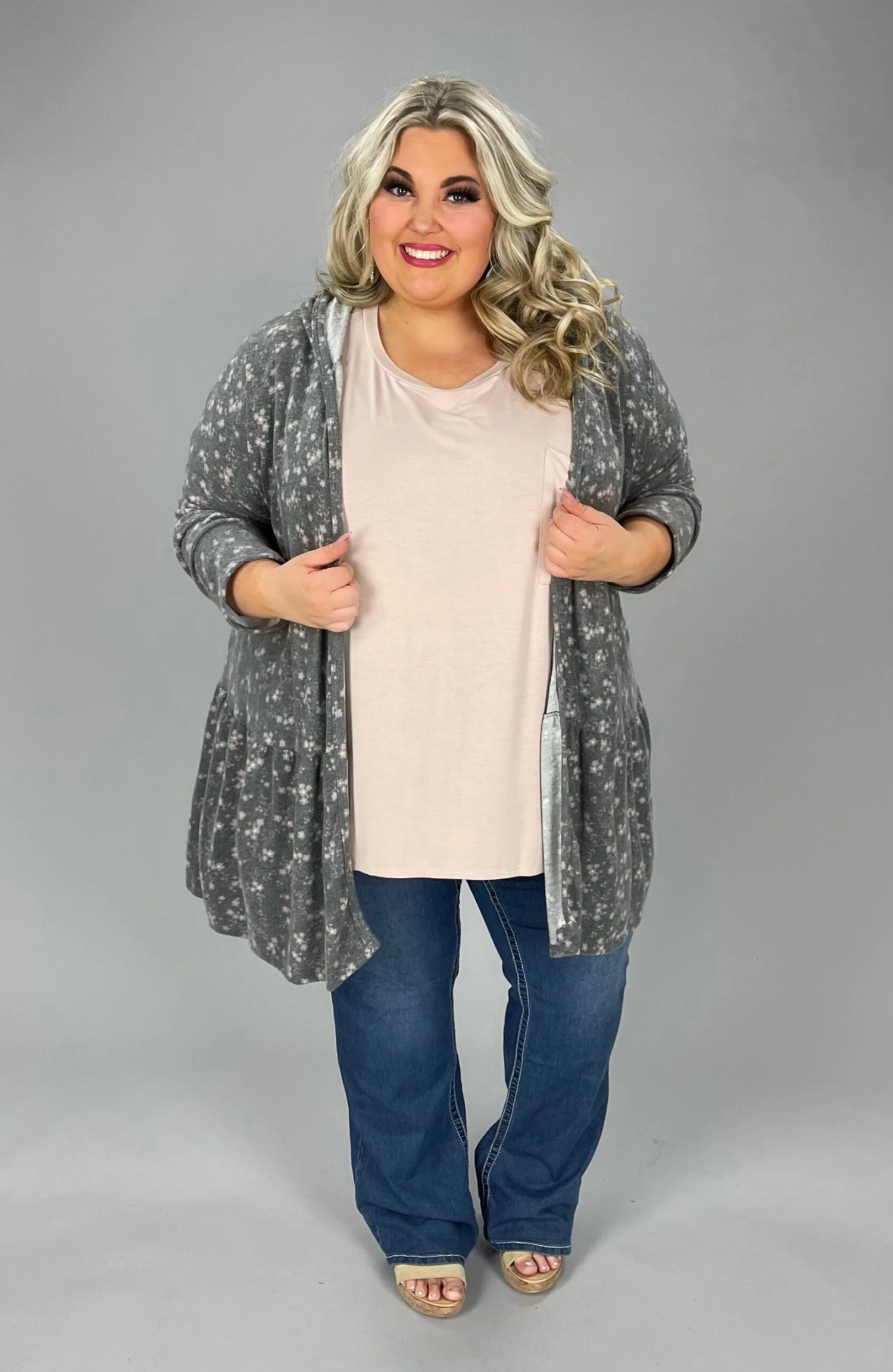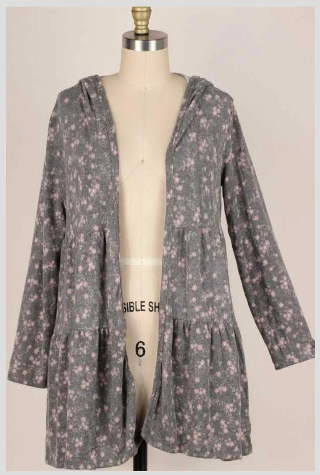 35 OT-B {Holding On} Charcoal Tiered Cardigan W/Hood PLUS SIZE 1X 2X 3X