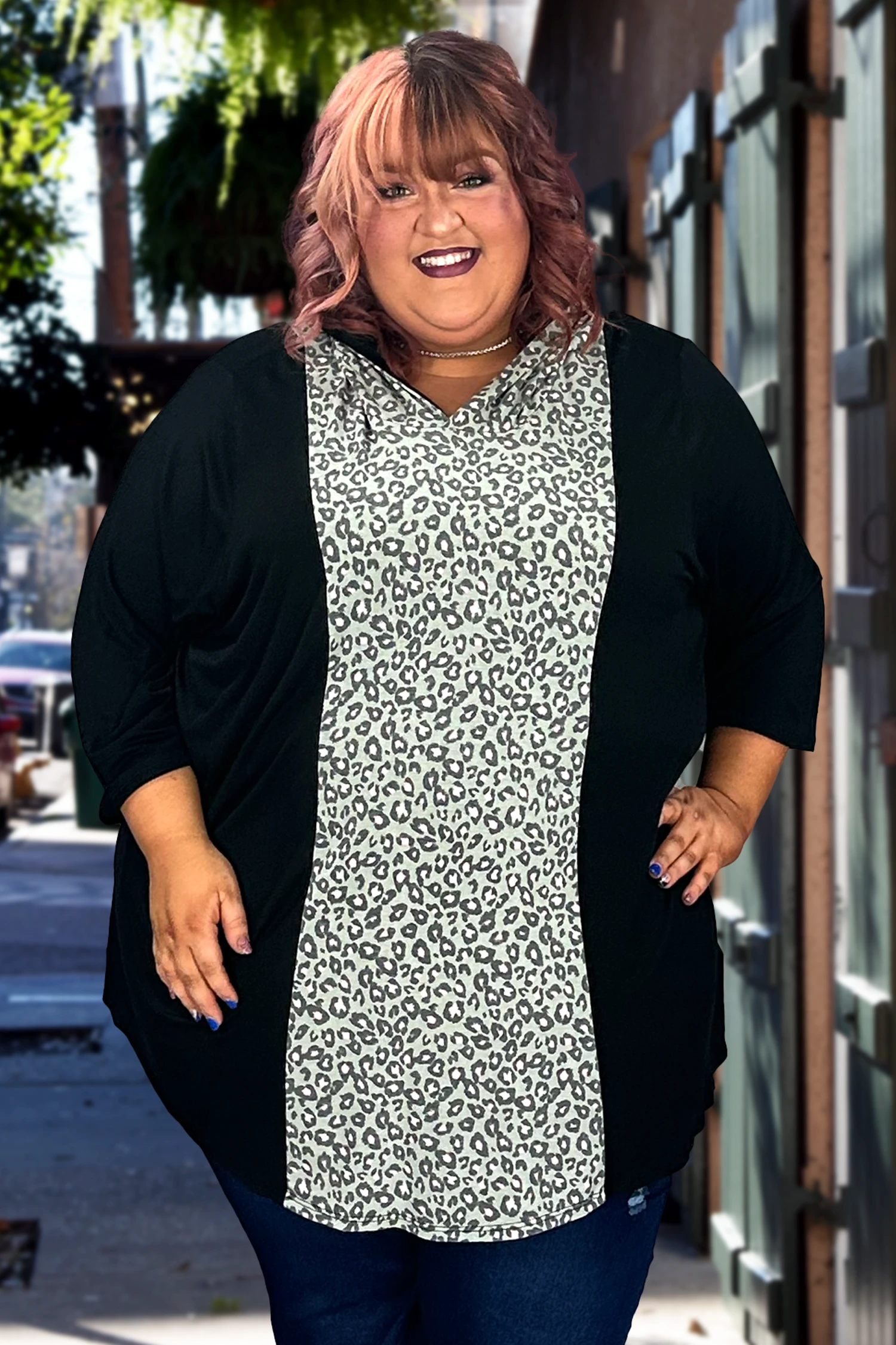36 HD-Z {Covering Tracks} Black/Grey Leopard Print Hoodie SALE!! CURVY BRAND!!! EXTENDED PLUS SIZE 4X 5X 6X
