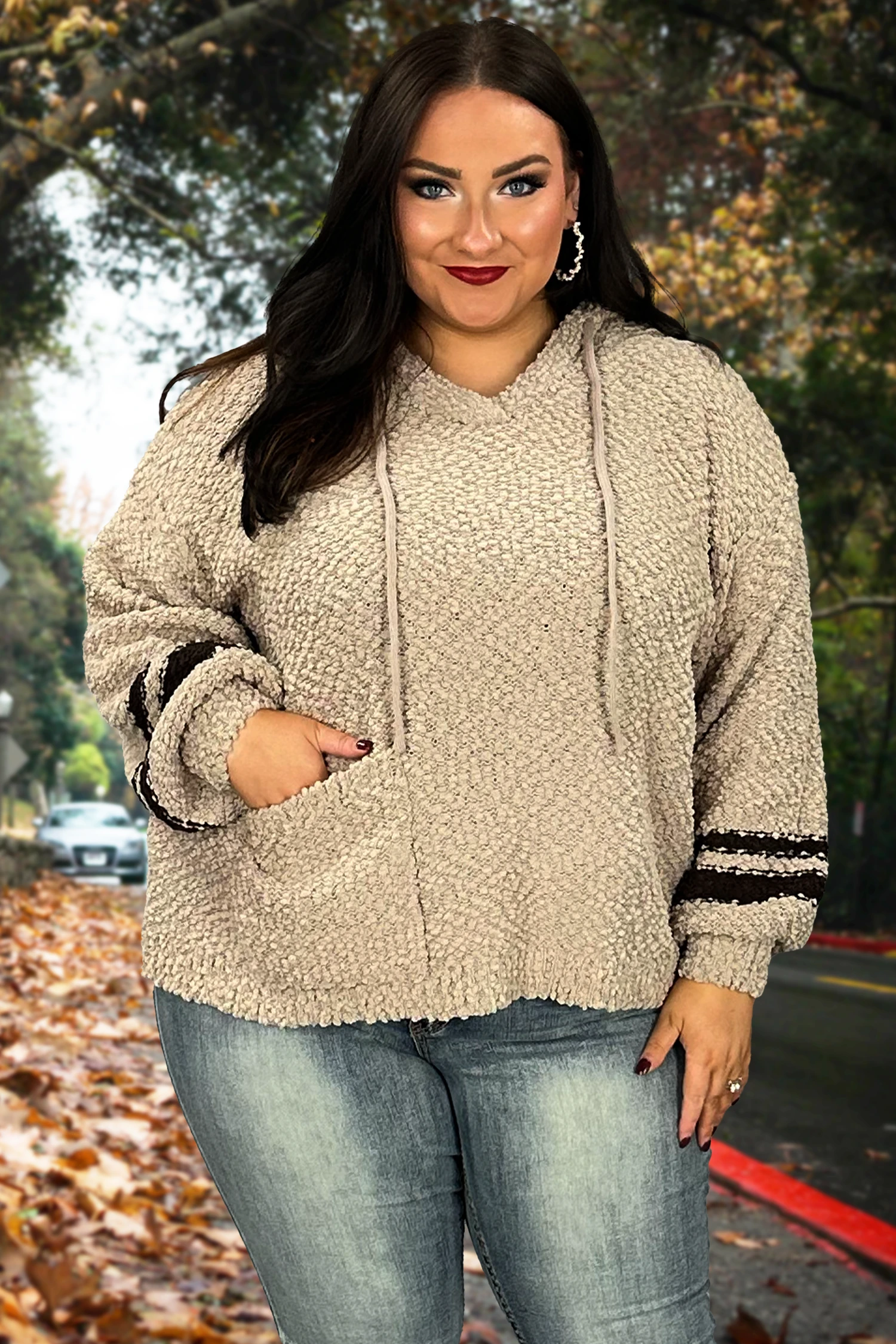 41 HD-G {Give It A Whirl} Mocha Knit SALE!! Hoodie W/Pocket PLUS SIZE 1X 2X 3X