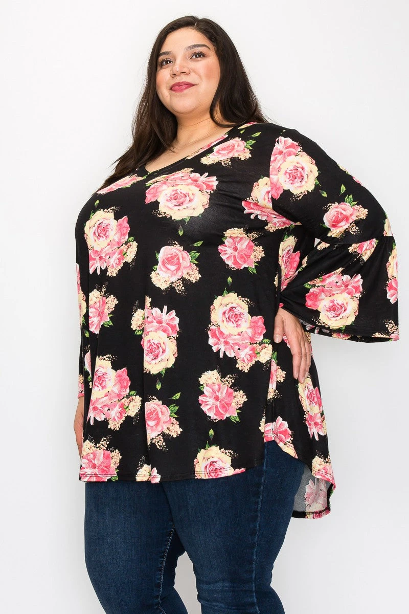 42 PQ {Every Rose} Black/Pink & Yellow Rose Print Top EXTENDED PLUS SIZE 3X 4X 5X