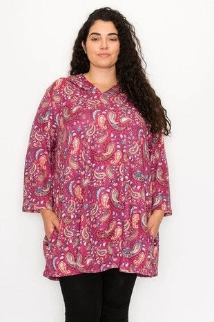 43 HD-B {Looking For A Sign} Mauve Paisley Print Hoodie CURVY BRAND!!! EXTENDED PLUS SIZE 4X 5X 6X