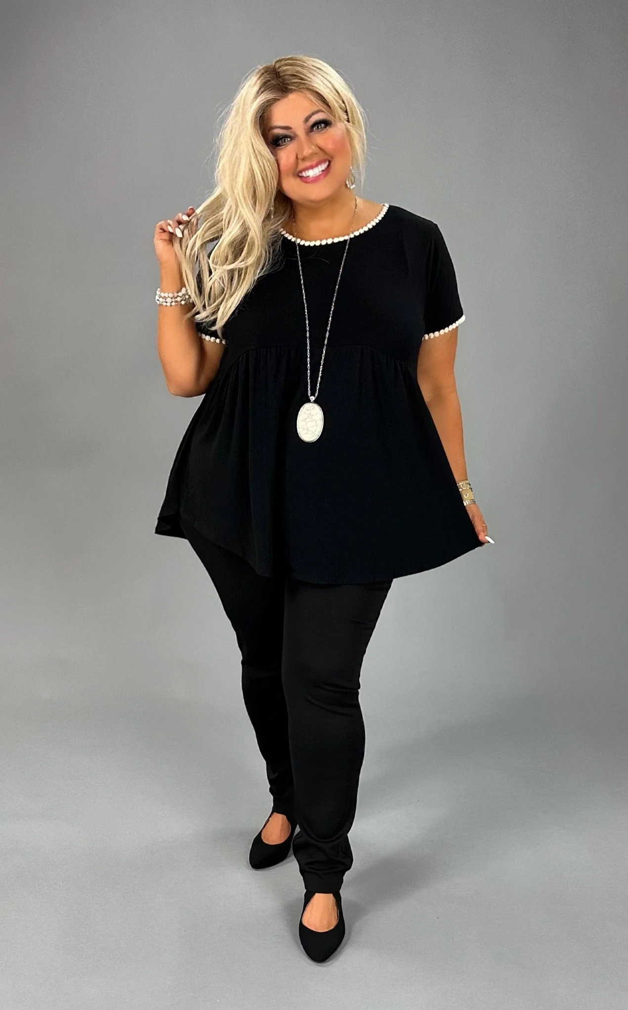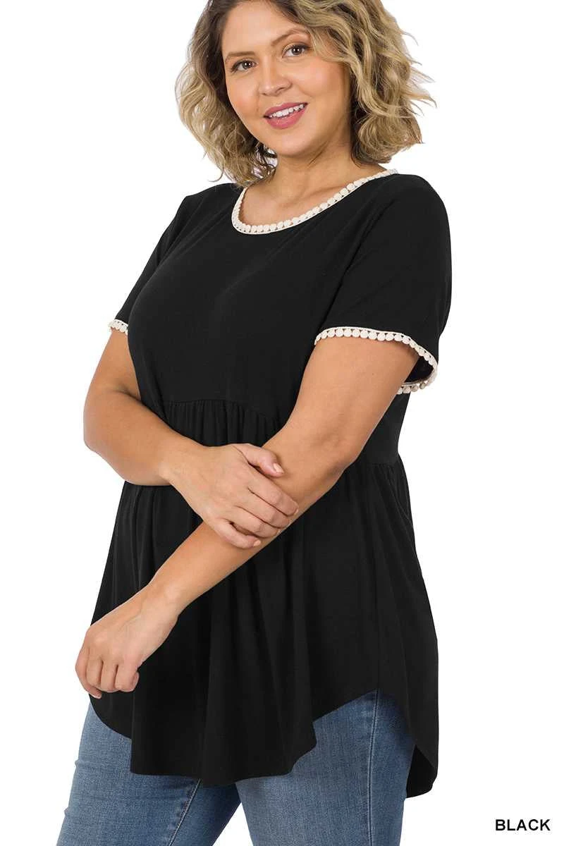 44 CP-G {Fashion On Call} Black Babydoll Top W/Ivory Trim PLUS SIZE 1X 2X 3X