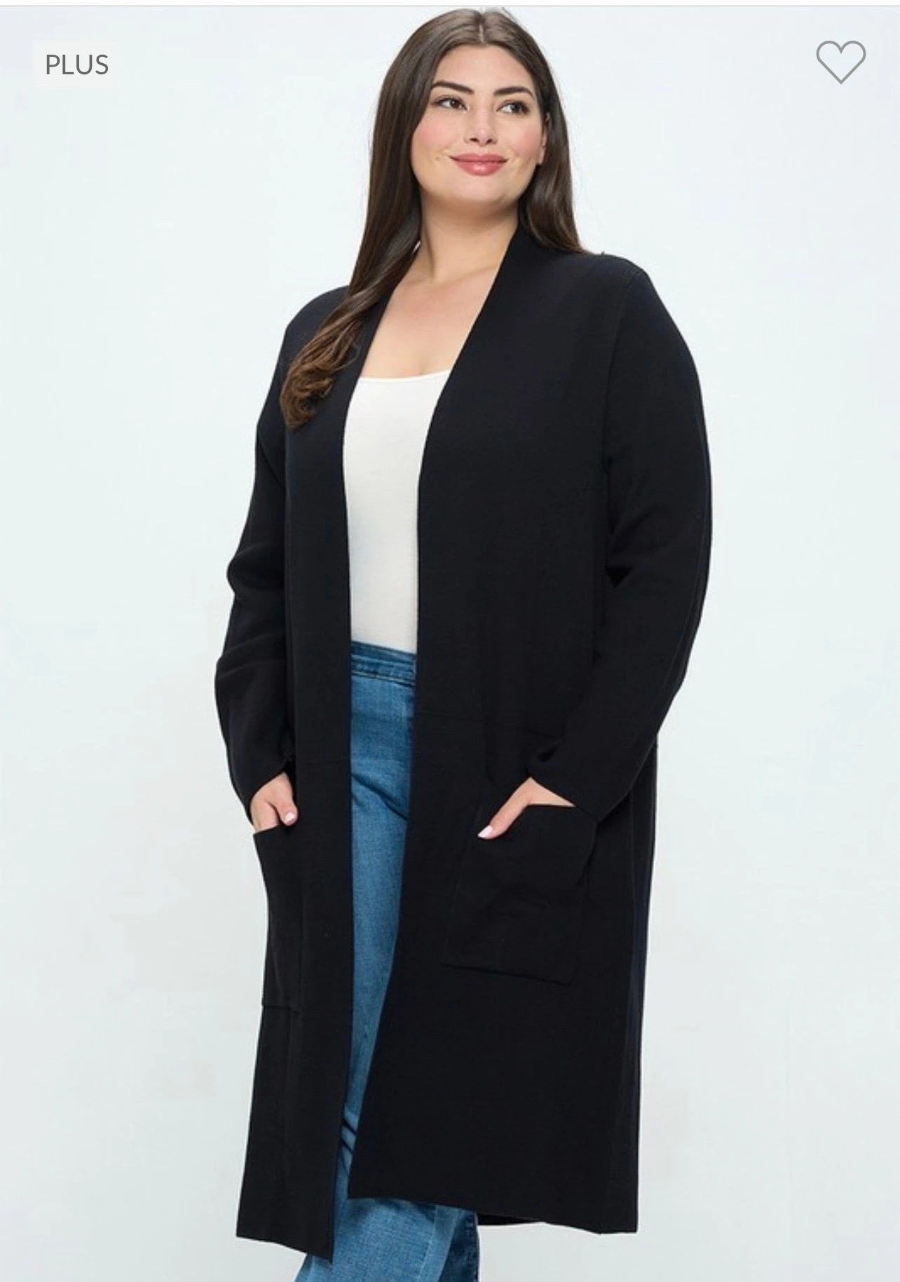 48 OT-A {Drawn To You} Black SALE!! Long Cardigan W/Hood PLUS SIZE XL 1X 2X