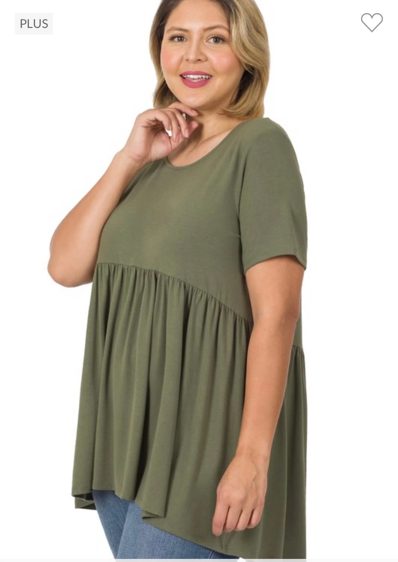 52 Or 43 SSS-K [Feeling The Love} Light Olive Babydoll Tunic PLUS SIZE 1X 2X 3X
