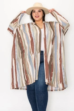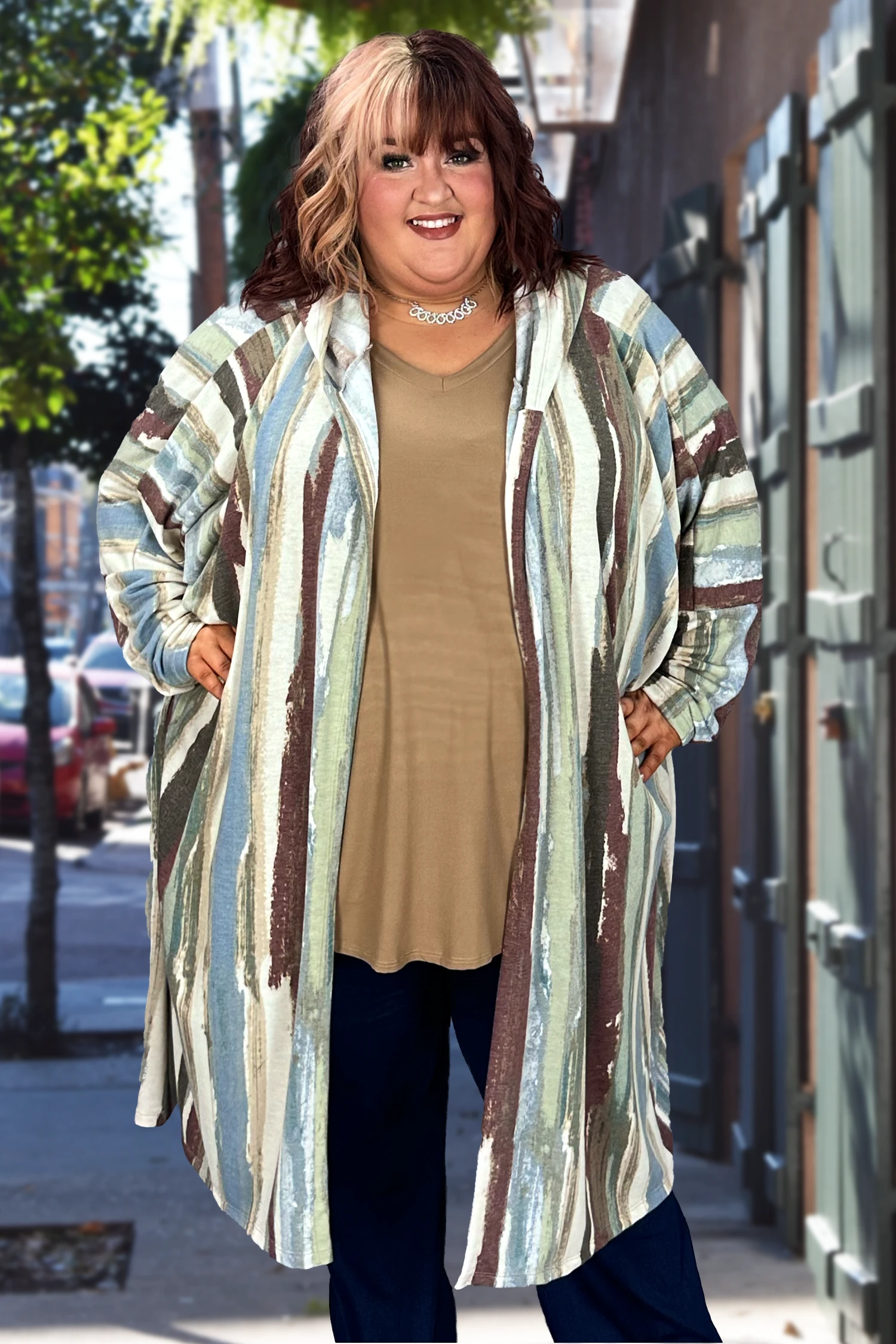 53 OT-C {Wake Up Call} Olive Striped Hooded Cardigan EXTENDED PLUS SIZE 3X 4X 5X