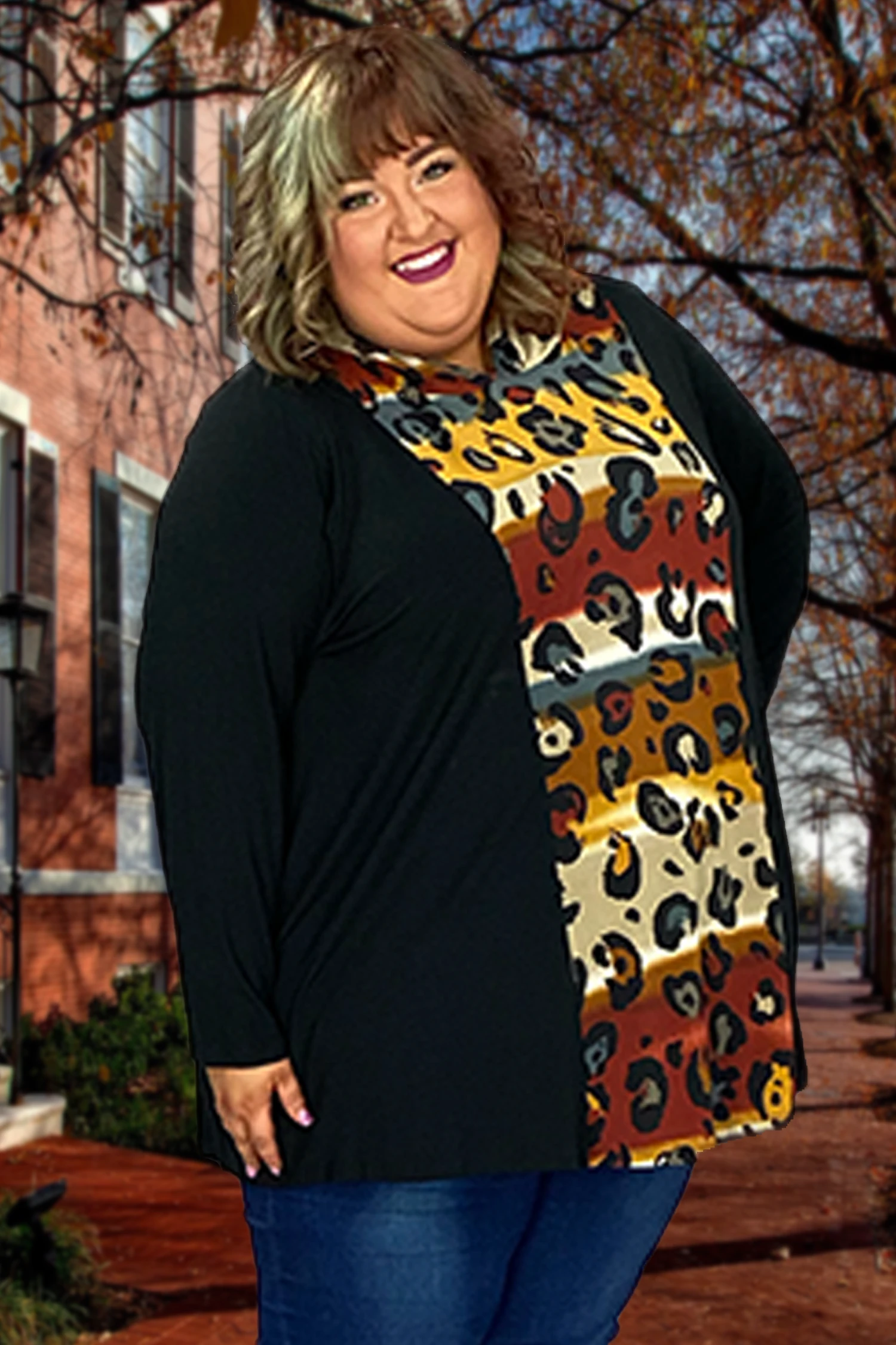 59 OR 32 HD-B {Admiration} Black/Rust Animal Print SALE!!! Hoodie CURVY BRAND!! EXTENDED PLUS SIZE 4X 5X 6X
