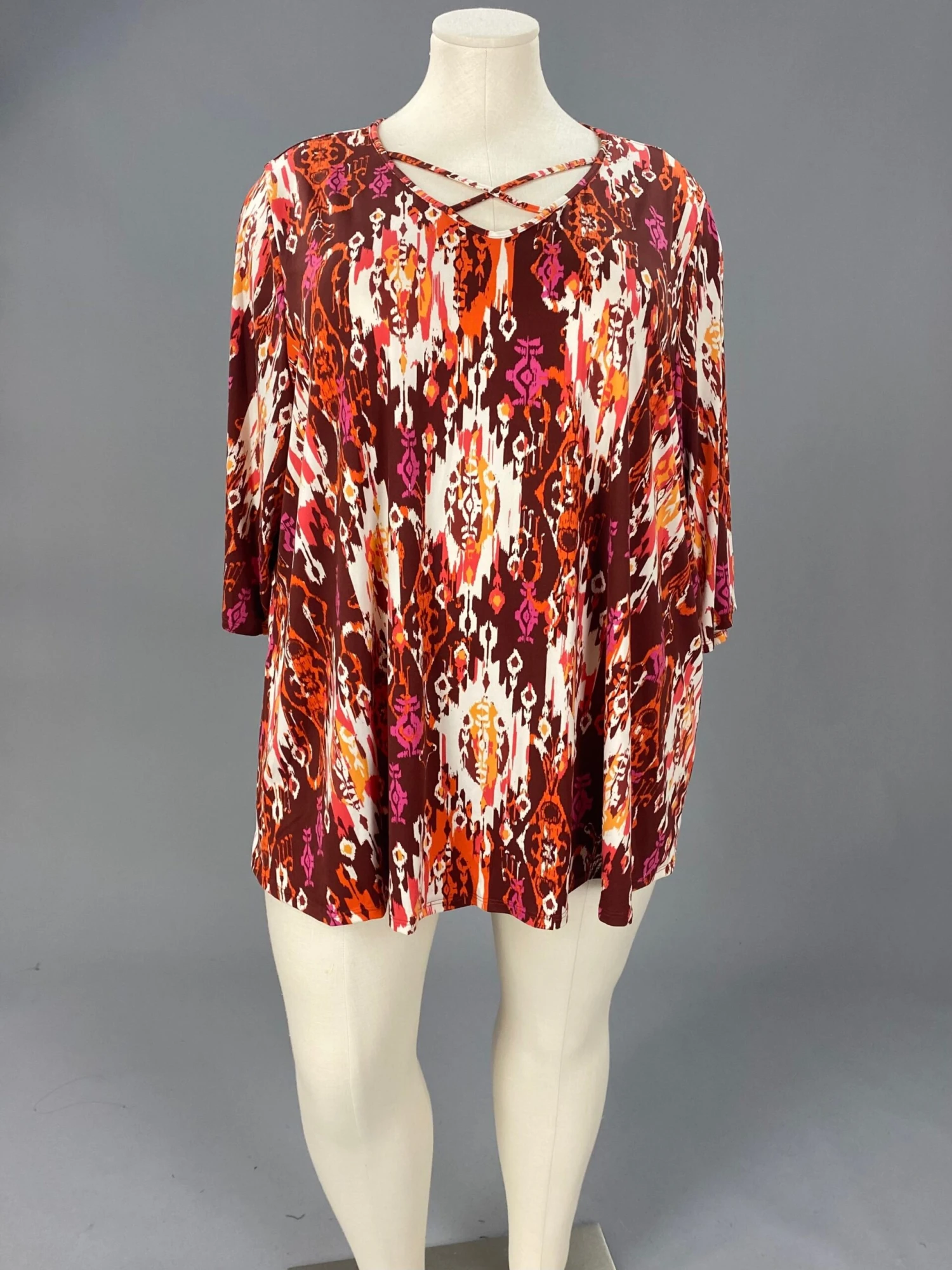65 PSS {Never Miss Out} Burgundy Print Criss-Cross Tunic CURVY BRAND!!! EXTENDED PLUS SIZE 4X 5X 6X