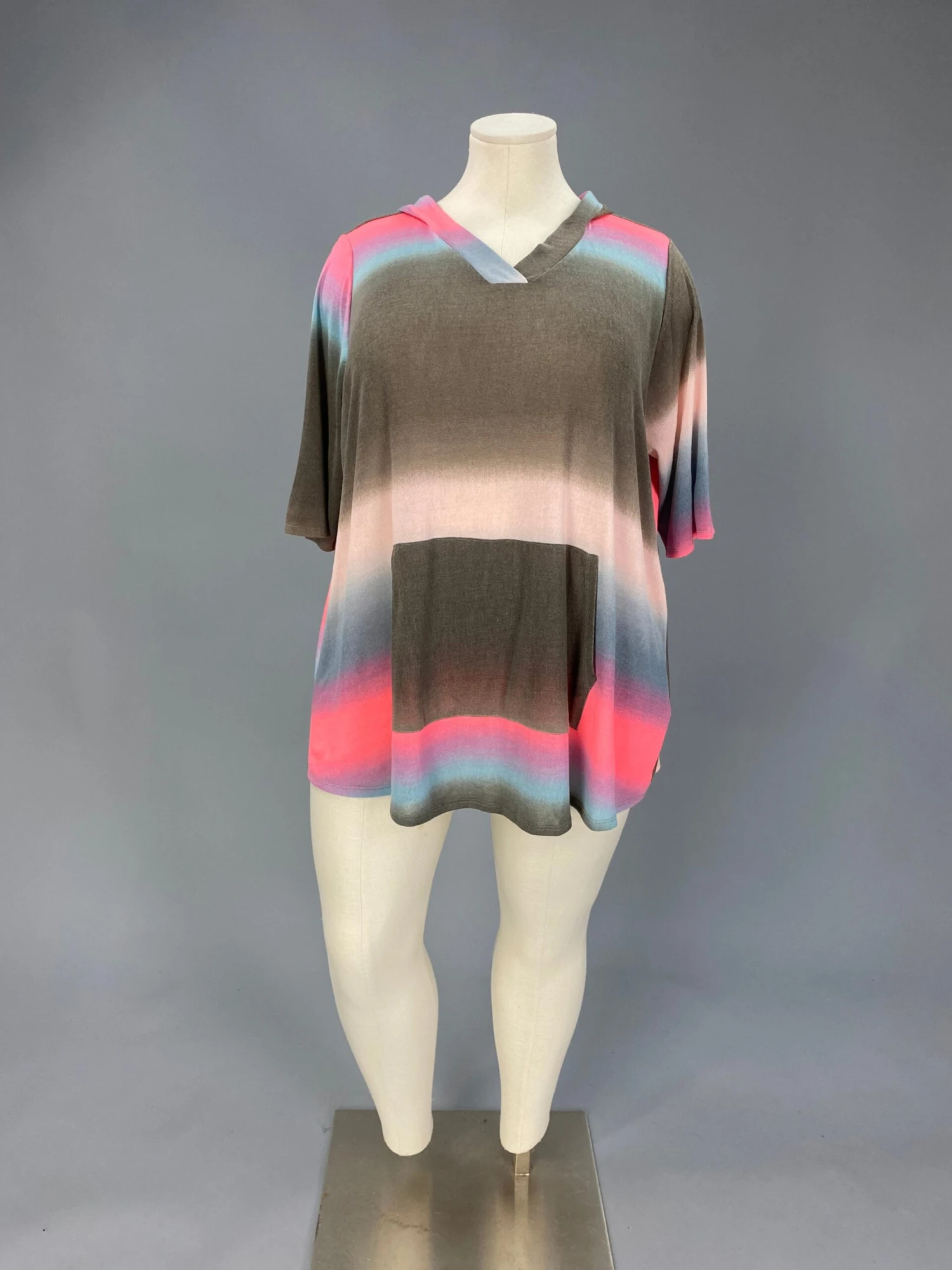 66 HD {Follow Me To Curvy} Grey Coral Teal Striped Hoodie CURVY BRAND!!! EXTENDED PLUS SIZE 3X 4X 5X