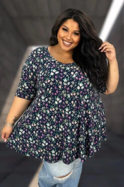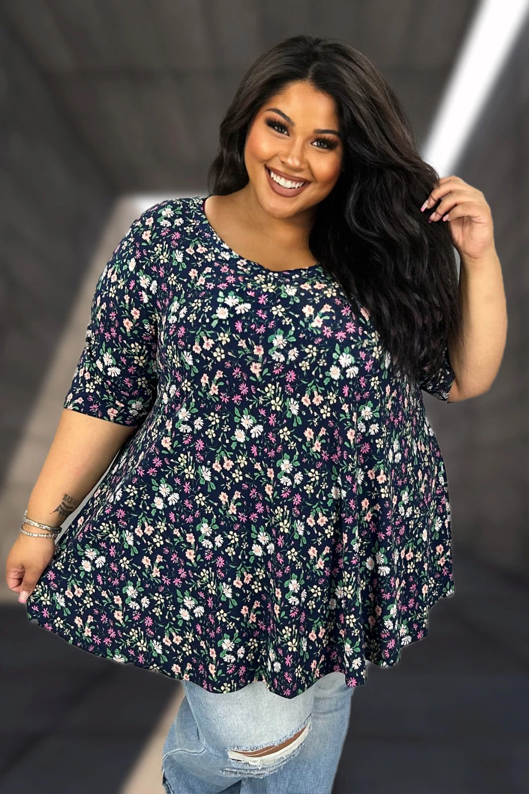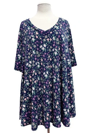 79 PSS {How My Garden Grows} Navy Floral V-Neck Top EXTENDED PLUS SIZE 3X 4X 5X