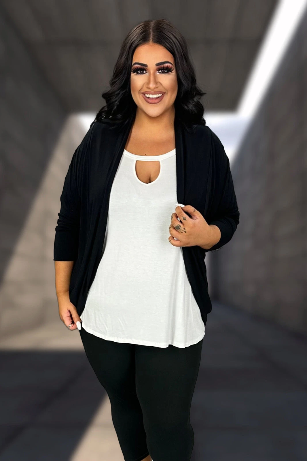 81 OT {Fashion Icon} Black Cardigan W/Gold Sleeve Buttons PLUS SIZE 1X 2X 3X