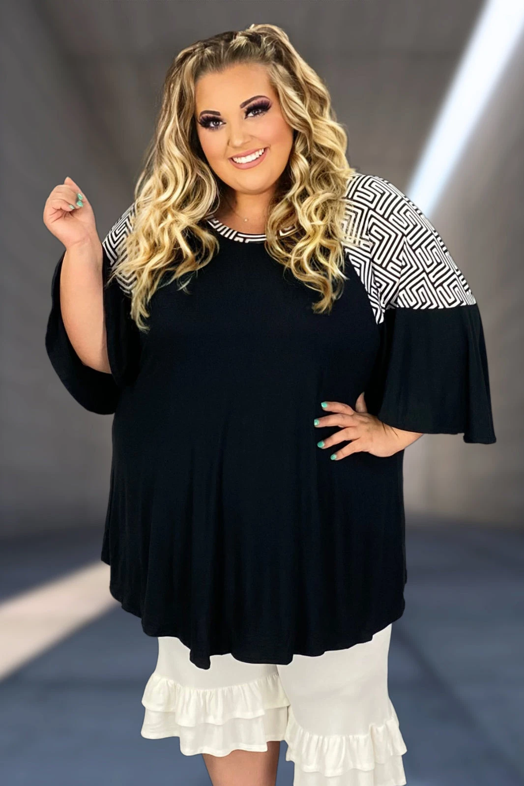 88 CP-G {Remarkable Style} Black Tunic W/Ivory Print CURVY BRAND!!! EXTENDED PLUS SIZE 4X 5X 6X
