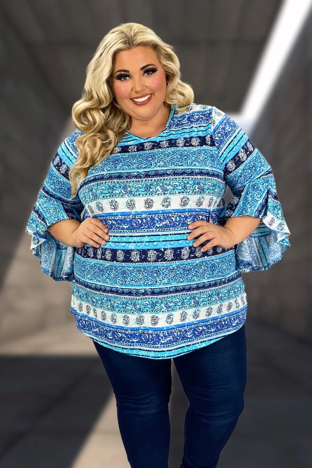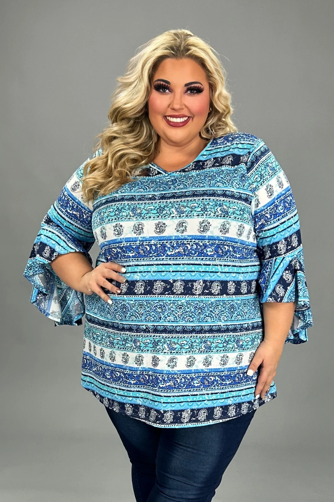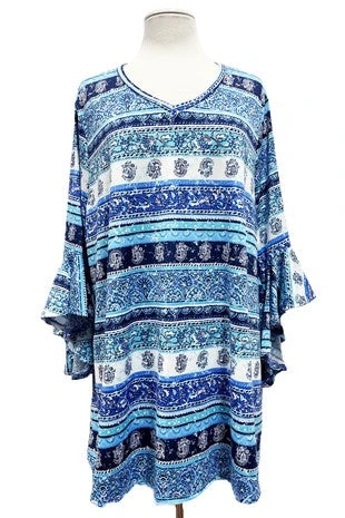 90 PQ {Strive For The Best} Blue Stripe Print V-Neck Top EXTENDED PLUS SIZE 4X 5X 6X