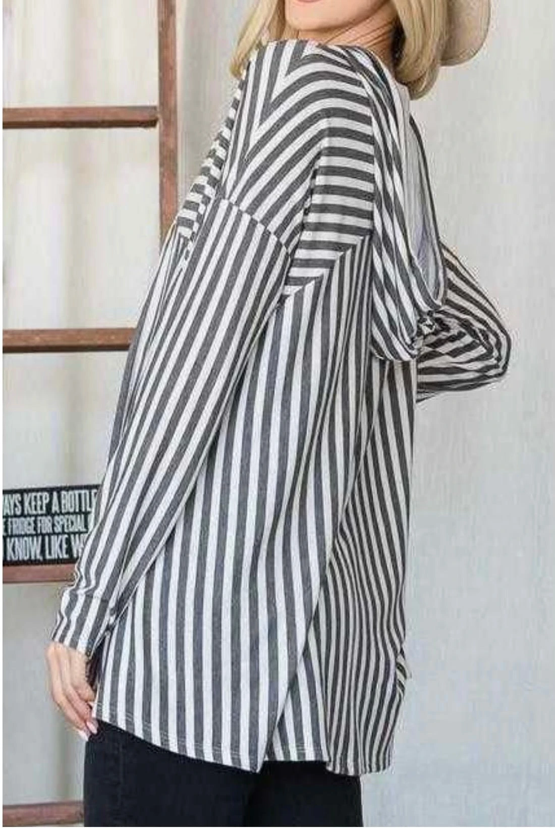 91 HD-C {Boss Lady Fav} Gray/Ivory Striped Hoodie PLUS SIZE 1X 2X 3X