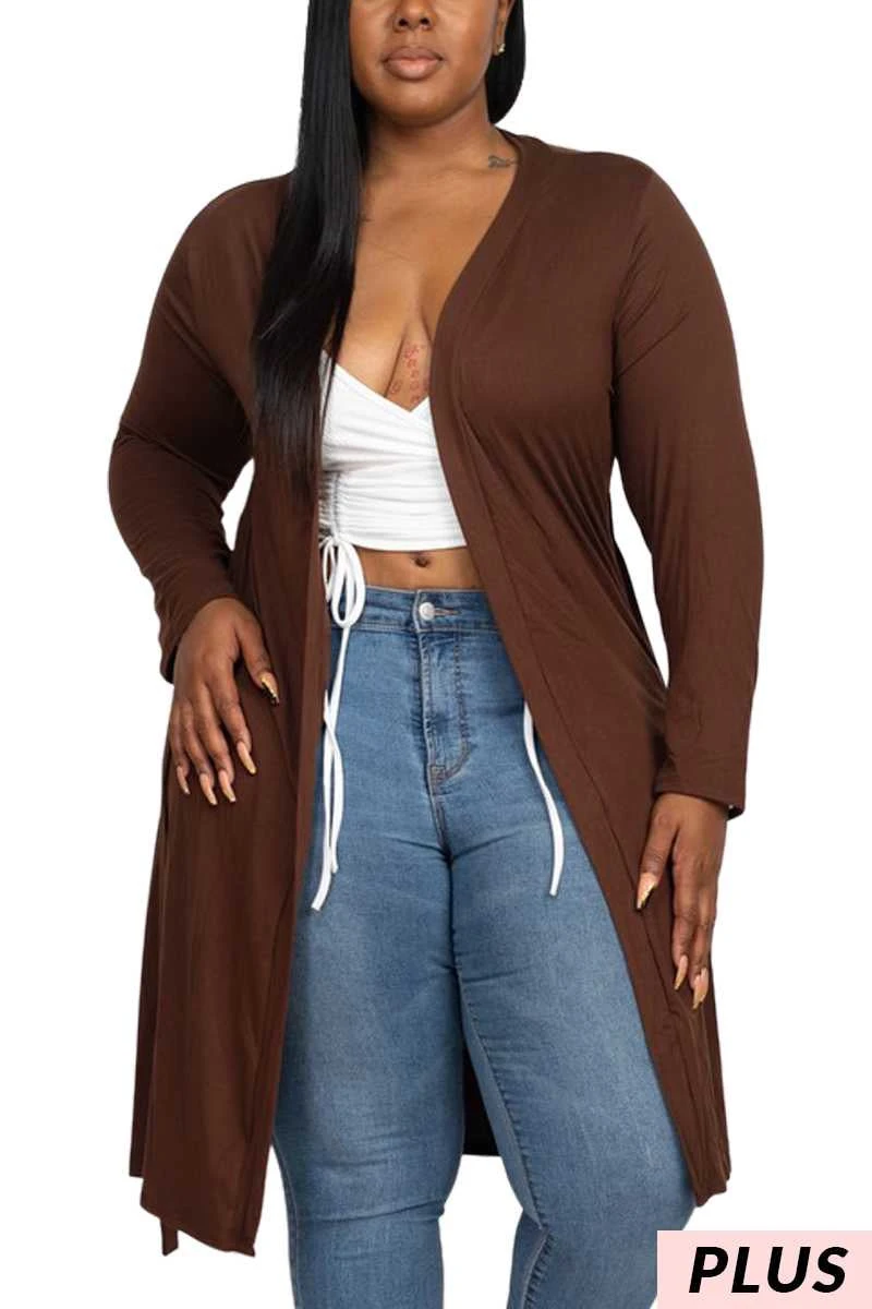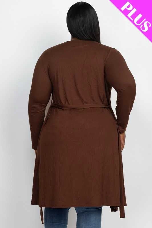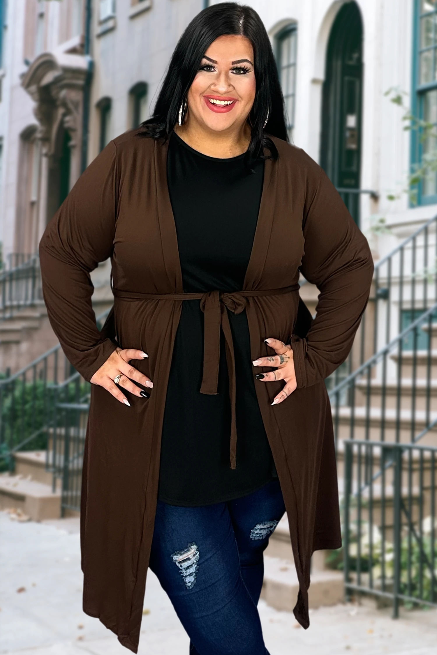 91 OT-L {Well Aware} Brown Tie Front Cardigan PLUS SIZE 1X 2X 3X