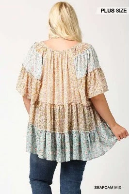 93 CP-C {Bring Me Flowers} GiGiO Floral Chiffon Peasant Top PLUS SIZE XL 1X 2X
