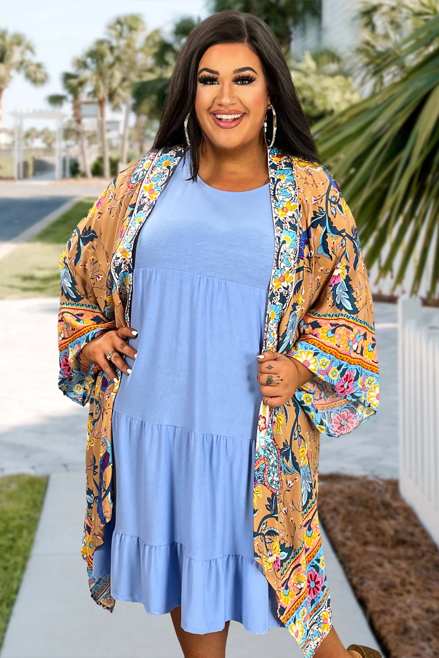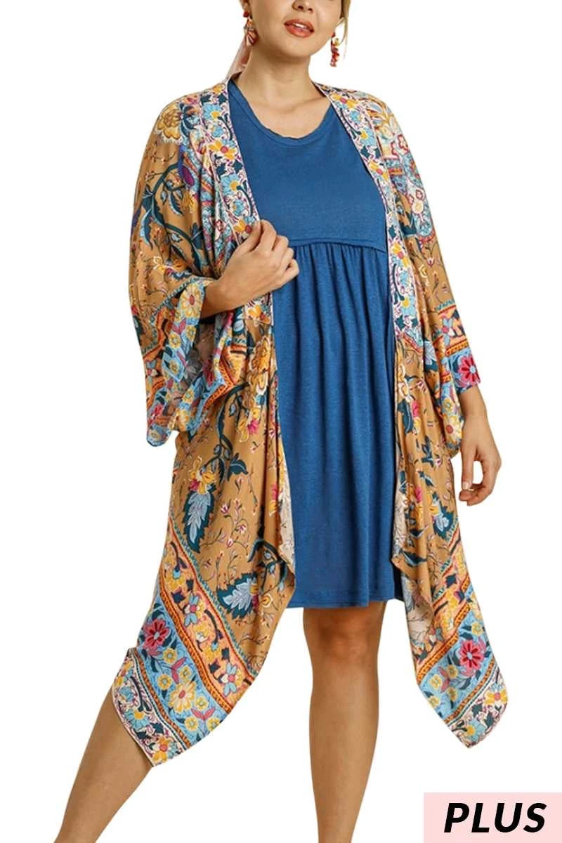 99 OT-N {A Turn Around} Umgee Almond Floral Kimono PLUS SIZE XL/1X 1X/2X