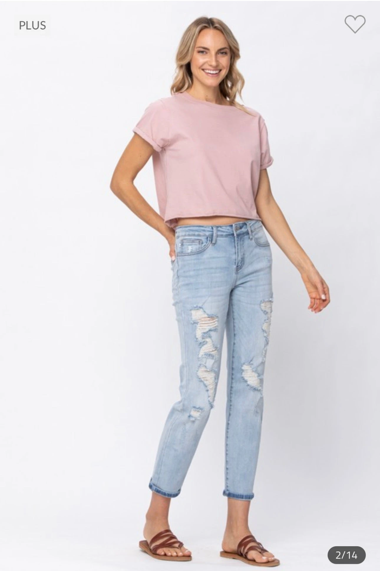 BT-F {Judy Blue Boyfriend Fit} Lt. Blue Ripped Jeans PLUS SIZE 20W 22W
