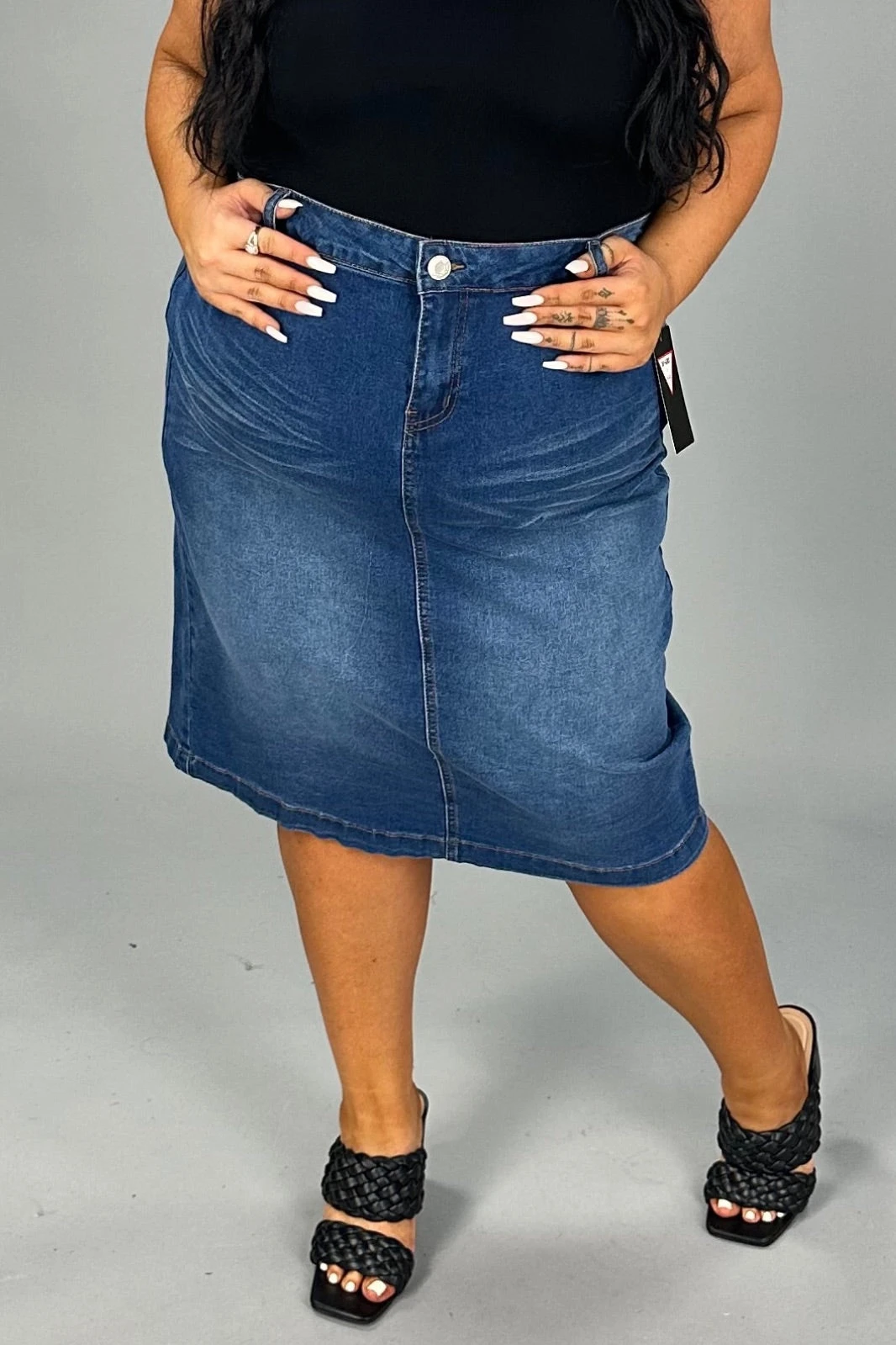 BT-Y {No Secret} Indigo Wash Calf Length Skirt PLUS SIZE XL 2X 3X