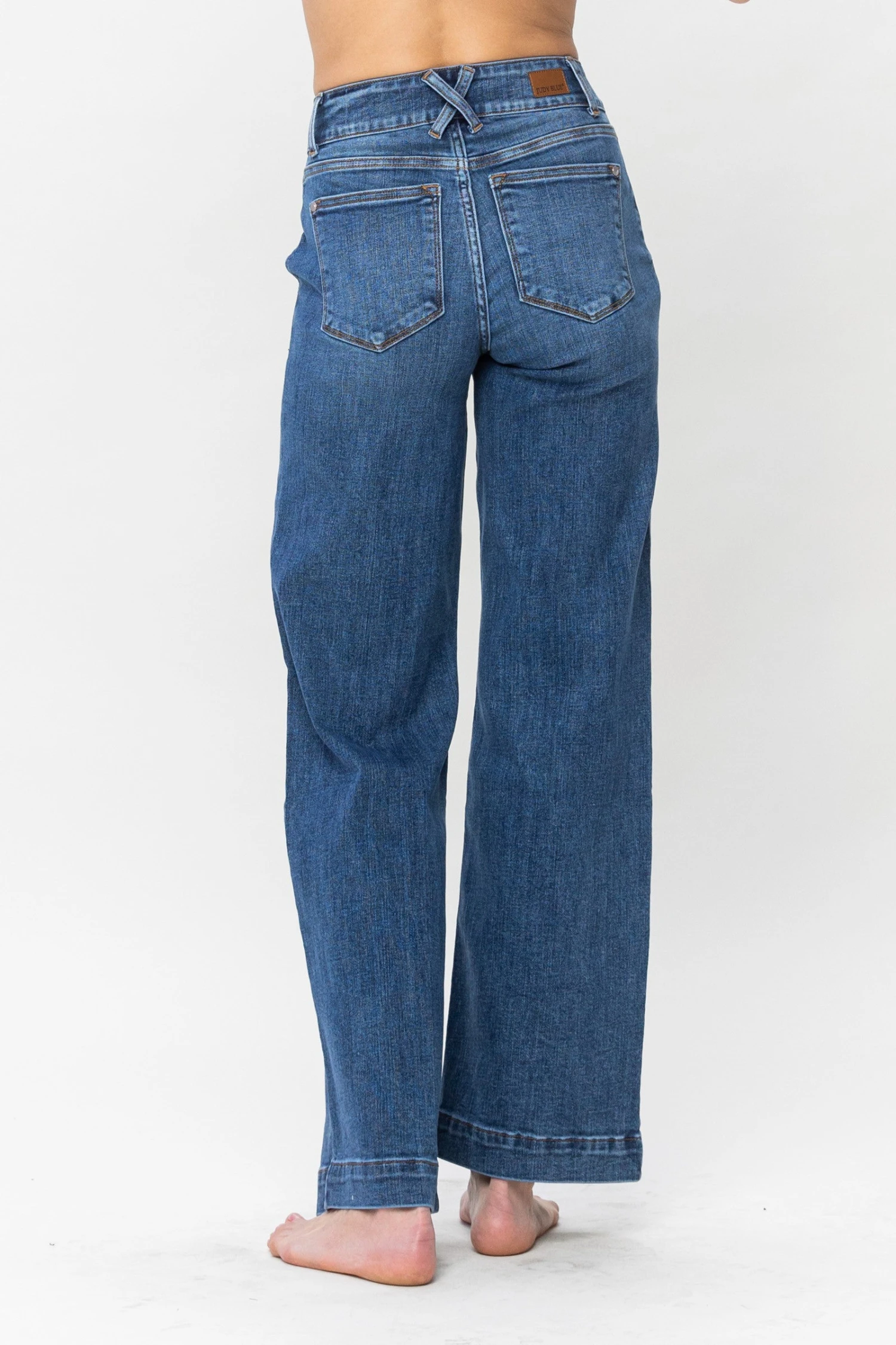 BT-Z {Judy Blue} Med Blue High Waist Wide Leg Jeans EXTENDED PLUS SIZE 16 18 20 22 24